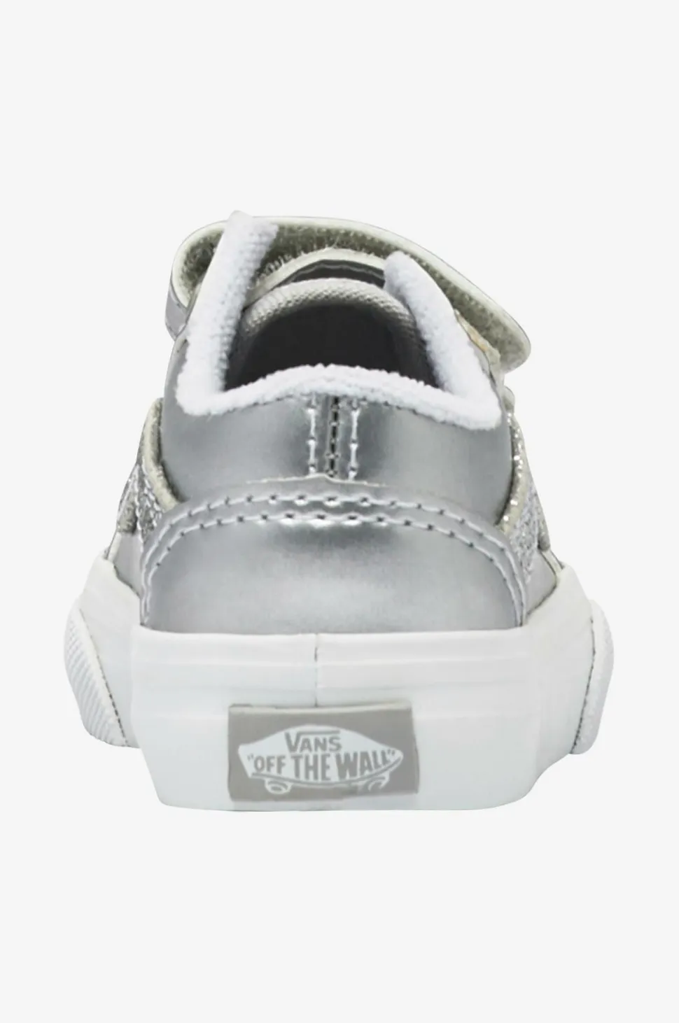 • Sølvagtige sneakers i kunststof med glitrende detaljer i satin på siderne