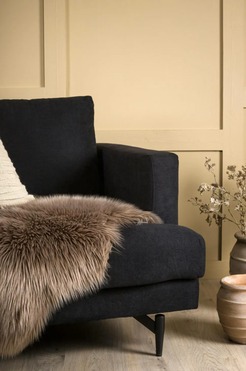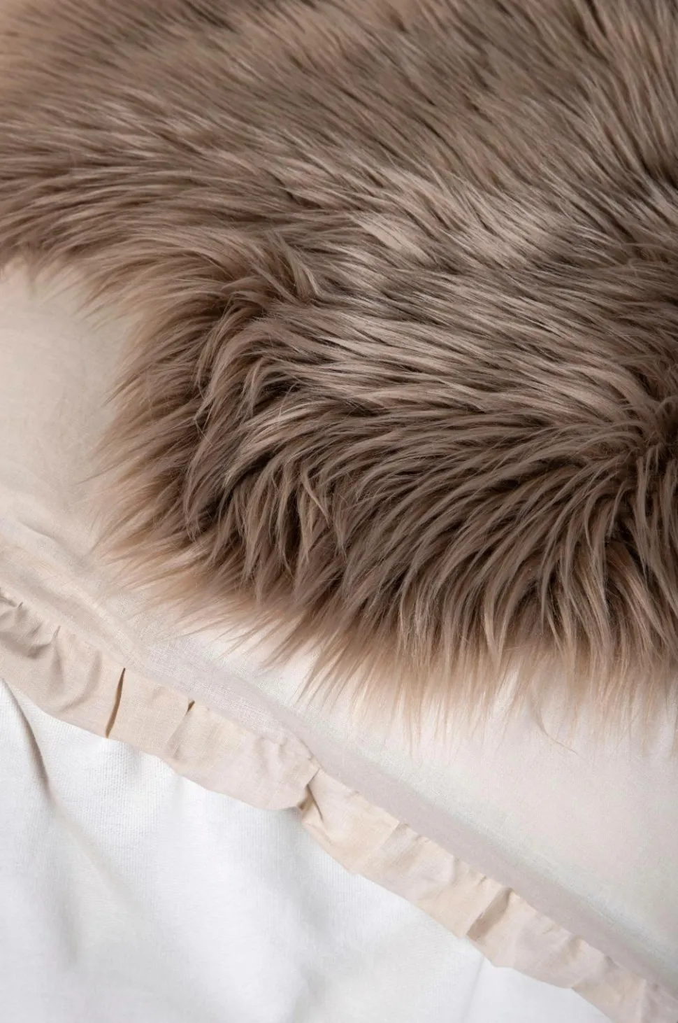Indret dit hjem hyggeligt og varmt med et tæppe i imiteret fåreskind. I en trendy hvid farve og blød pels med langt hår har dette fåreskind mange anvendelsesmuligheder – læg det ved siden af sengen, på sofaen, i barnevognen eller på terrassen for et varmere indtryk. Lavet af slidstærkt polyester og akryl og imiteret ruskind for et mere autentisk look.