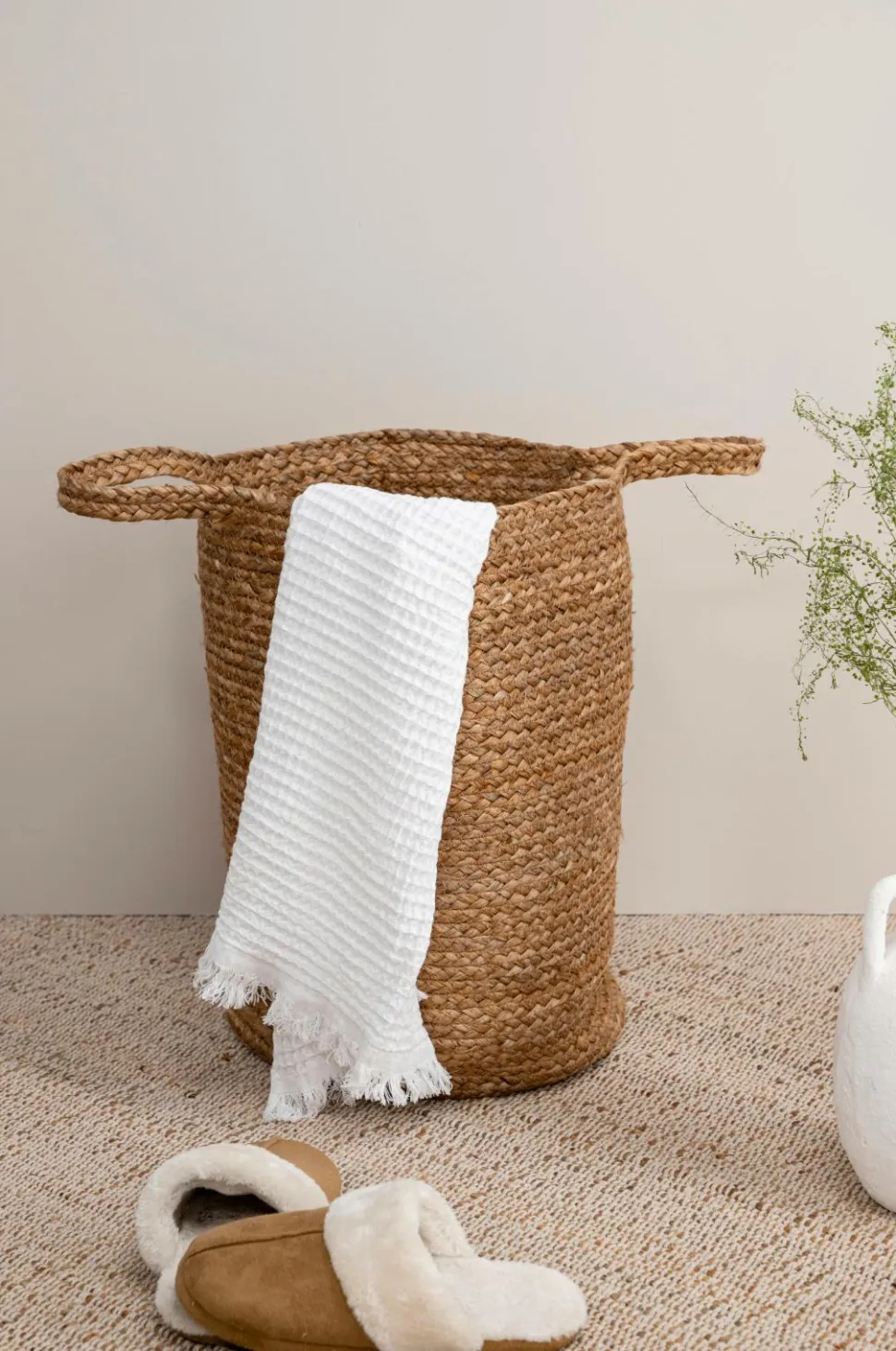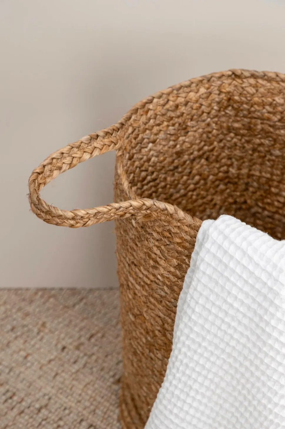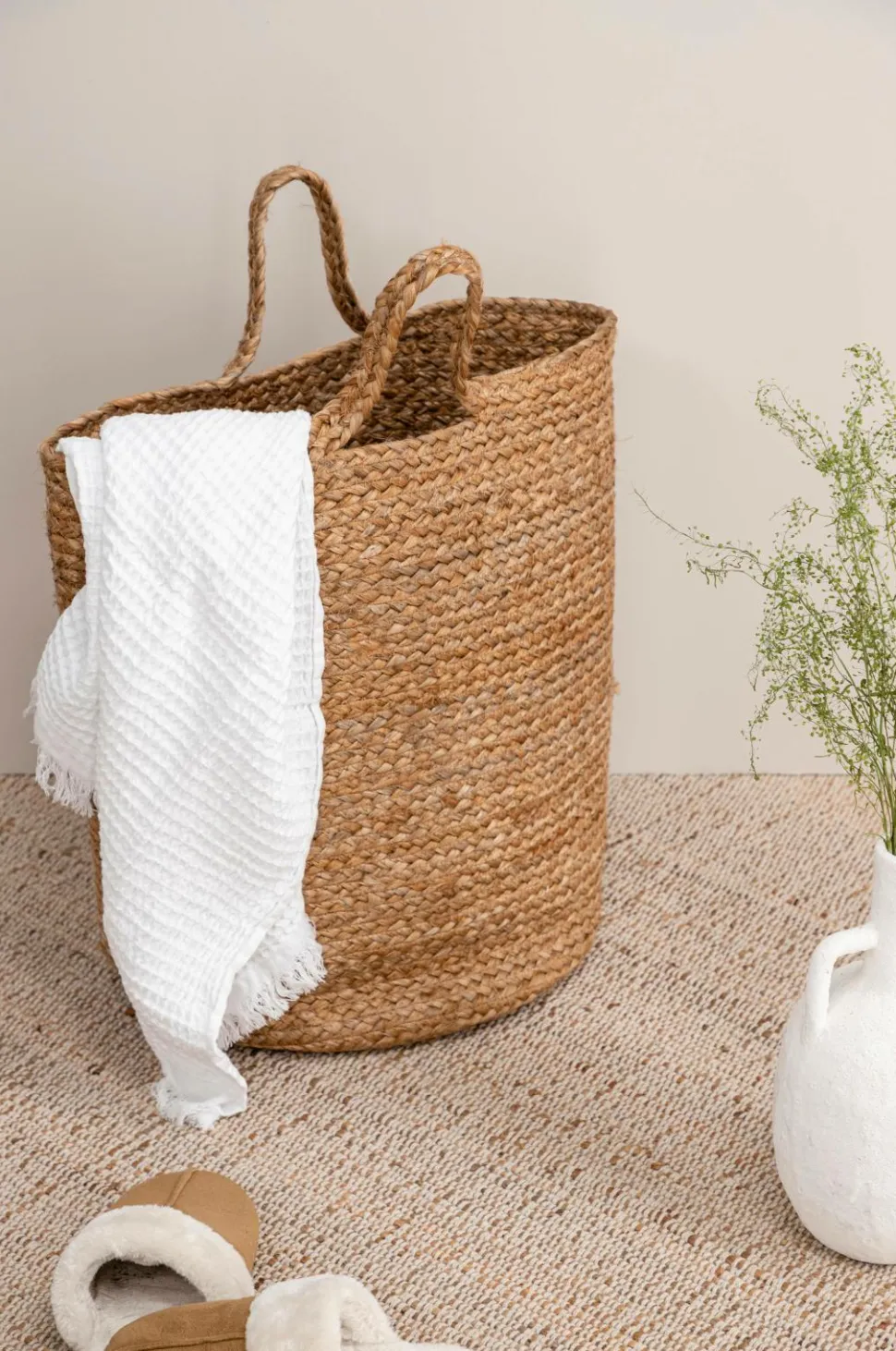 Indret dit hjem praktisk og moderne med en flot kurv fra serien Pune! Denne flotte opbevaringskurv i flettet jute er en høj og stilren model med to praktiske greb og en øvre ramme i en stilren farve. Brug som opbevaring til tæpper og håndklæder eller som en krukke til en smuk plante. Kurvene er dog ikke vandtætte, så husk at placere planten i en vandtæt, indvendig skjuler. En flot indretningsdetalje og smart opbevaring på én gang!