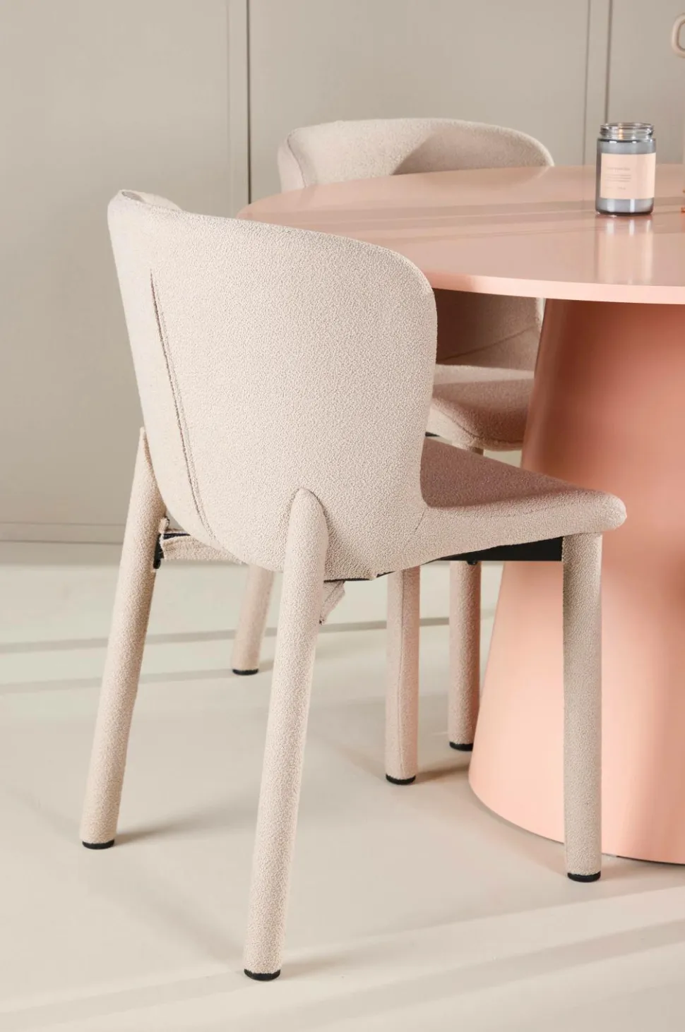 Astoria-spisestolen supplerer bordet med sin luksuriøse, strukturerede polstring, der giver en varm og sofistikeret fornemmelse. Den subtile tekstur og det raffinerede design gør astoria til et tidløst valg, der passer perfekt ind i forskellige indretningsstile, fra moderne minimalisme til klassisk elegance. Stolen er designet til maksimal komfort og har et ergonomisk ryglæn og et generøst polstret sæde, hvilket gør den ideel til lange middage og afslappende sammenkomster. Det slanke design og de førsteklasses materialer gør astoria til det perfekte indslag i din spisestue.
