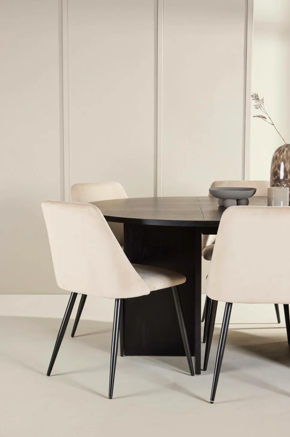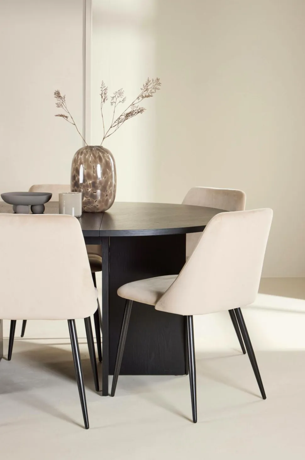 Sammen skaber night-spisestolen og strada-spisebordet en spiseplads, der kombinerer komfort, stil og funktionalitet. Night-stolens luksuriøse polstring og slanke ben supplerer perfekt det fleksible, elegant designede strada-bord, hvilket gør denne kombination til et elegant og praktisk midtpunkt i dit hjem.