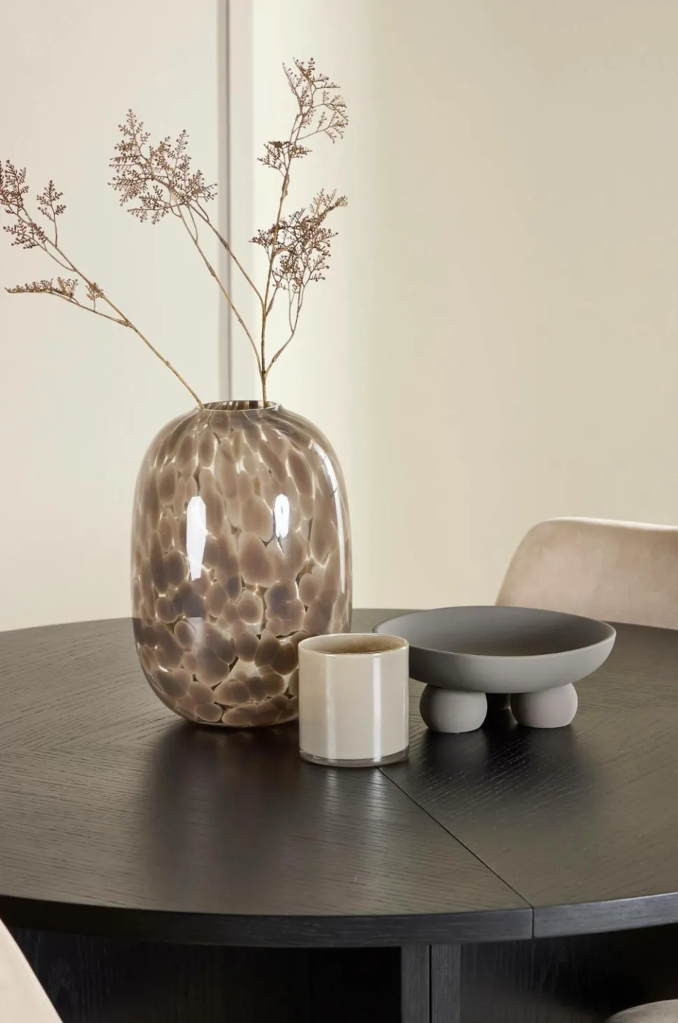 strada-spisebordet kombinerer slank elegance med praktisk funktionalitet. Bordet er fremstillet af finértræ af høj kvalitet og fremhæver materialets naturlige struktur og giver en luftig fornemmelse i din spisestue. Med en diameter på 120 cm er strada ideelt til hverdagens måltider, men når det er nødvendigt, kan det nemt forlænges til 170 cm, så der er plads til flere gæster. Den robuste konstruktion og det tidløse design gør det til et pålideligt og stilfuldt midtpunkt i dit hjem.
