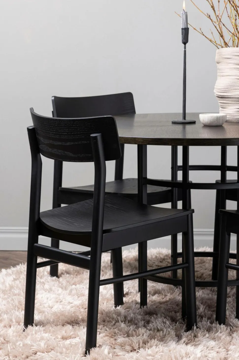 montros stolene supplerer bordet perfekt med deres enkle og elegante design. De er lavet af birketræ og matcher i en sofistikeret sort farve og giver hele spisesættet et tidløst og elegant udtryk. Stolene giver også en behagelig siddeoplevelse til lange og afslappede måltider med familie og venner.