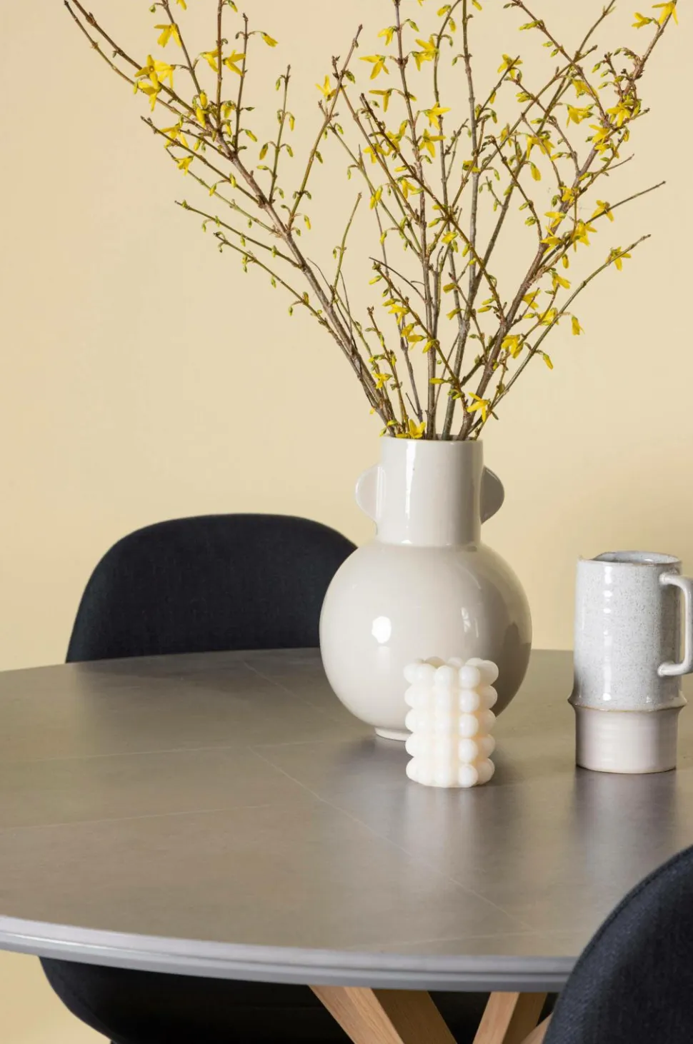 piazza bordet har en imponerende diameter på 120 cm, hvilket giver masser af plads til, at familie og venner kan samles omkring det. Det er lavet af robust støbt sten og forstærket med stålben og forener moderne design med stil. Den sofistikerede grå farve tilføjer et strejf af elegance til dit værelse.