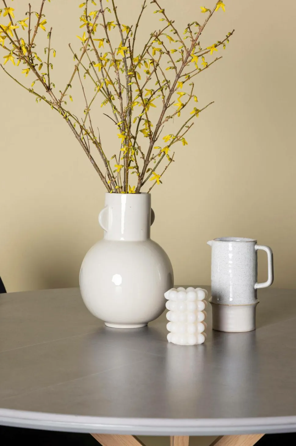 piazza bordet har en imponerende diameter på 120 cm, hvilket giver masser af plads til, at familie og venner kan samles omkring det. Bordet er lavet af robuste spraysten og understøttes af solide stålben, så det blander moderne design med stil. Den elegante grå farve tilføjer et strejf af sofistikeret stil til dit værelse.