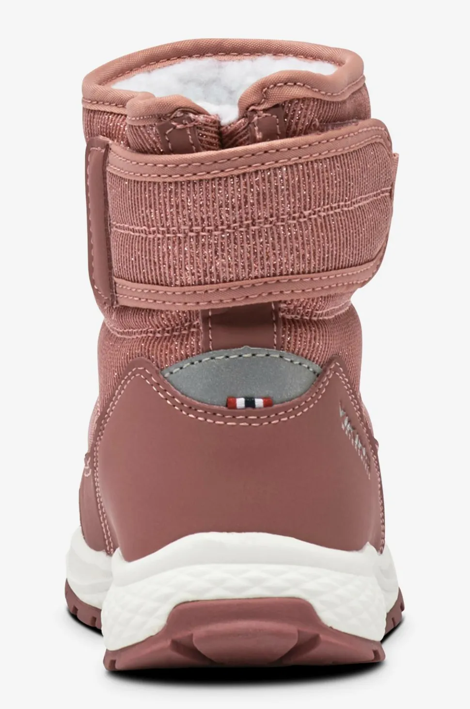 • Varmt forede, glitrende ankelstøvler med øvredel i tekstil og kunststof