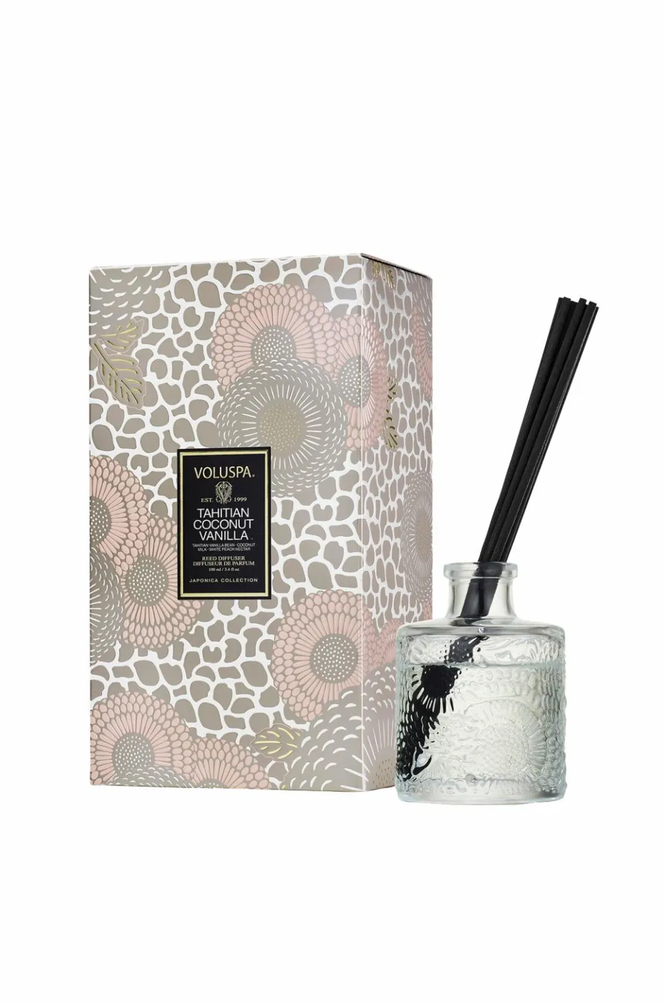 Hvid fersken, frisk kokosmælk og tahitisk vaniljestang.