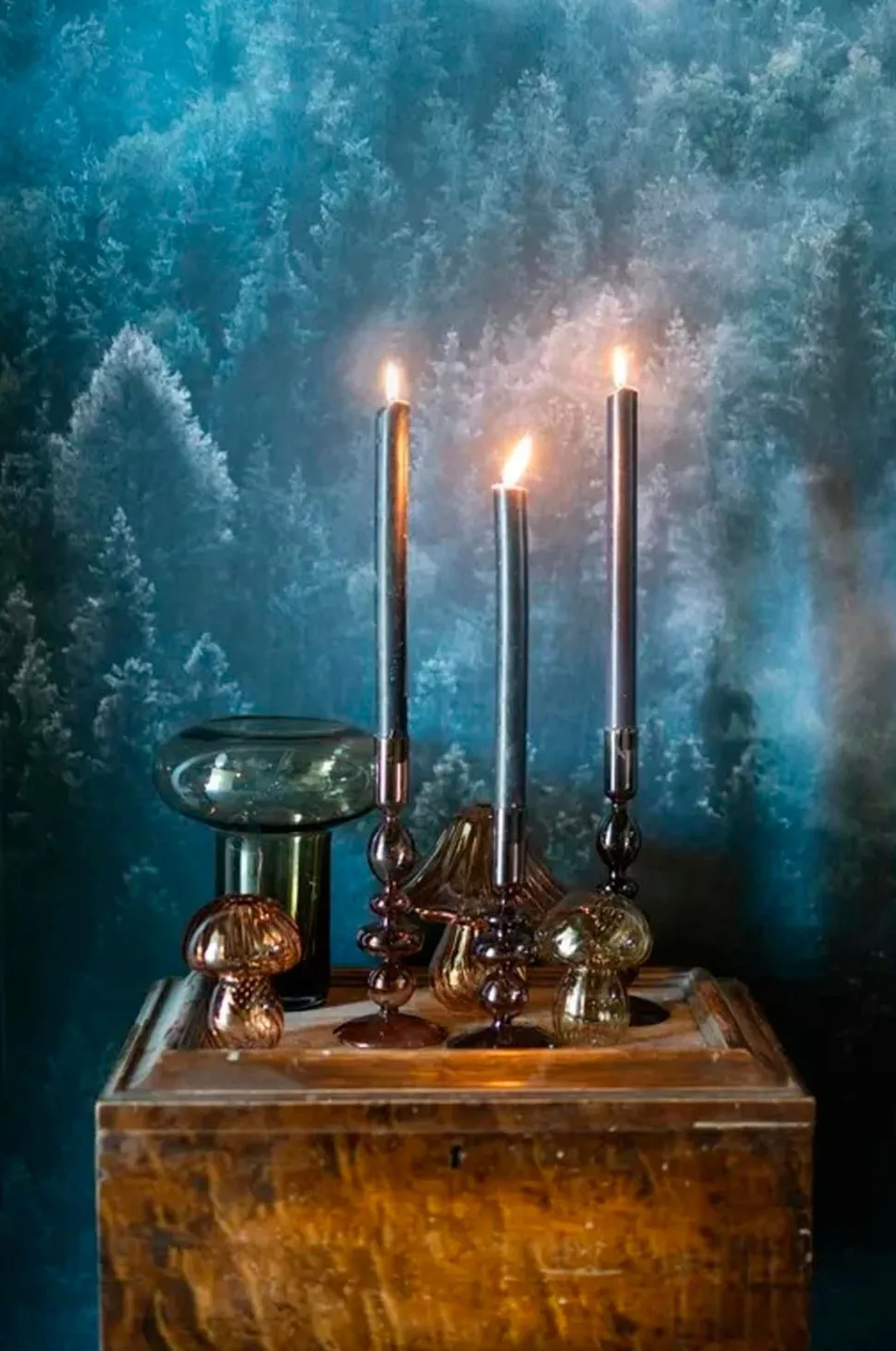 Dekorative svampe i gennemfarvet glas, sæt med tre. Mål: 15×15, 13×13, 9x10cm