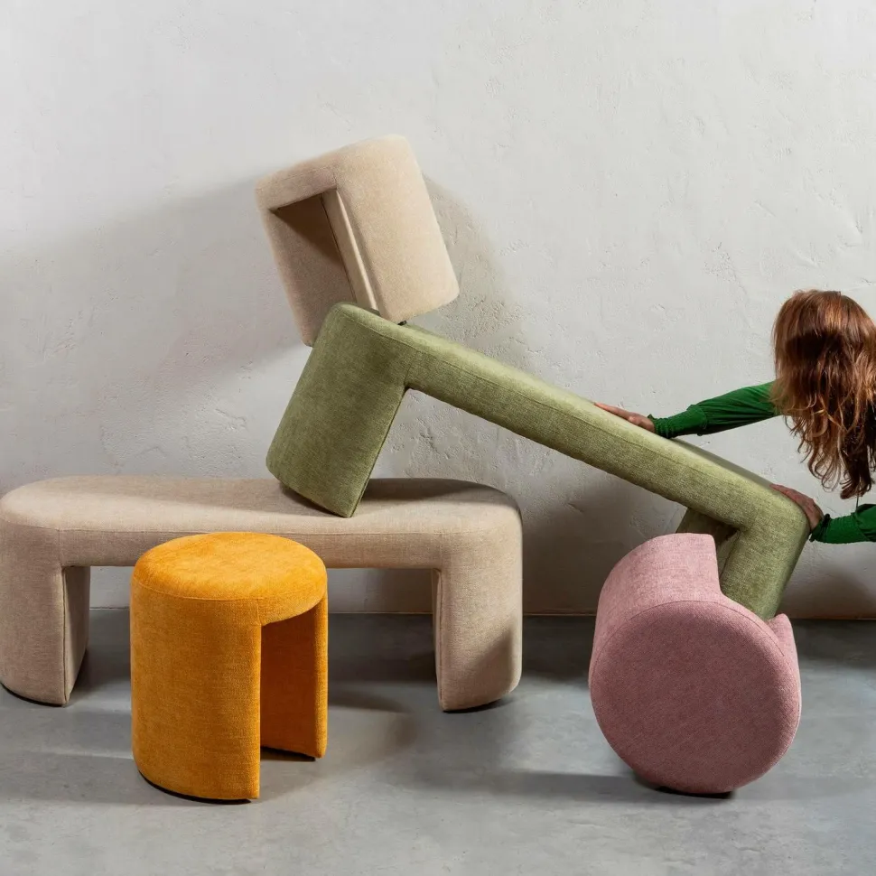 charlie-skamlen er et markant element i kollektionen fra det hollandske indretningsmærke woood. Charlie er beklædt fra top til tå med blød chenille, som giver det afrundede design et venligt udtryk. Den beskedne størrelse gør charlie meget pladsbesparende, win-win.