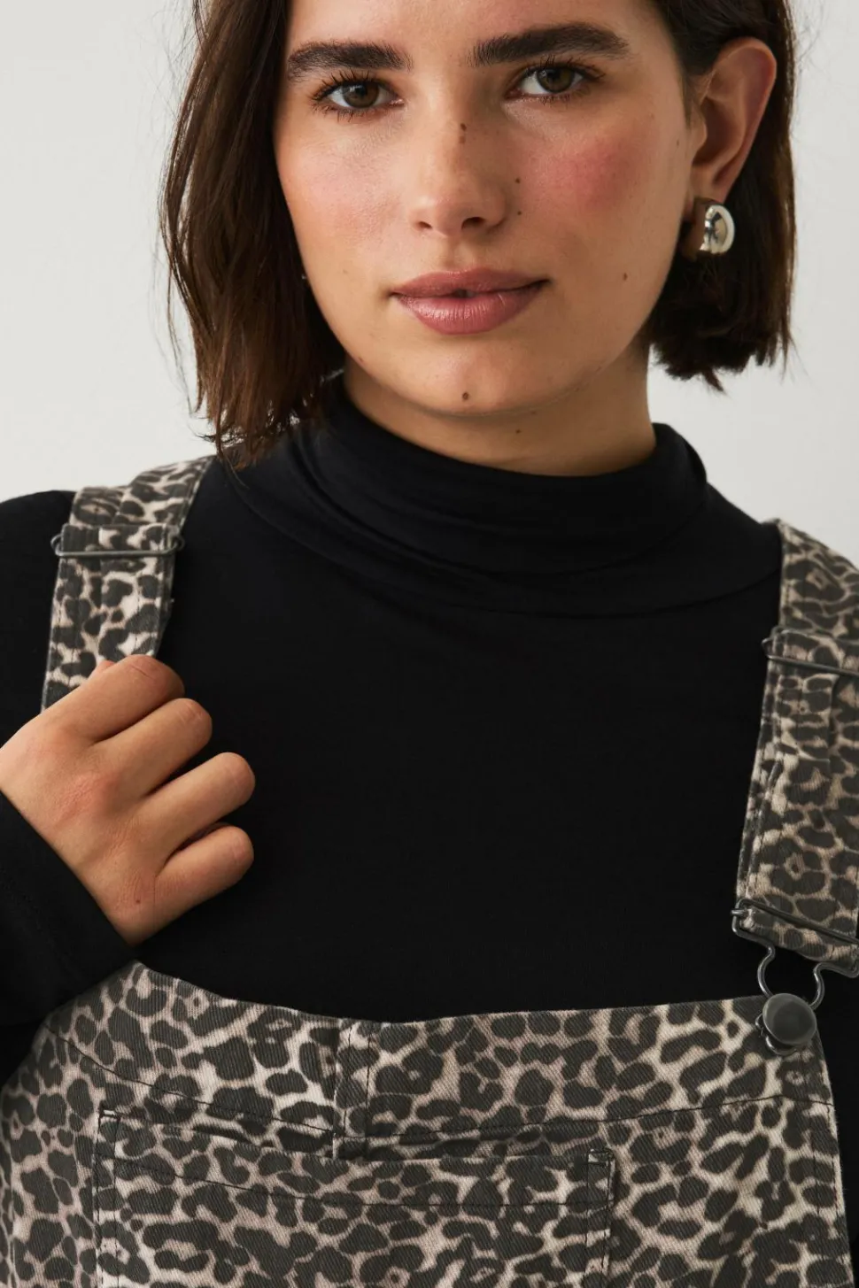 • Leopardmønstrede overalls i denim