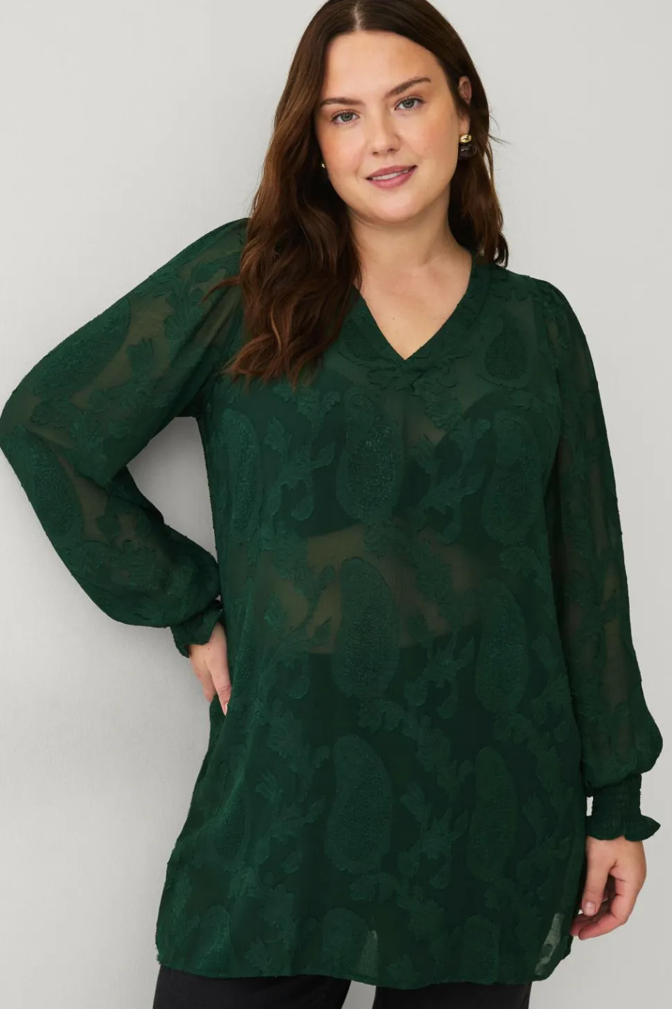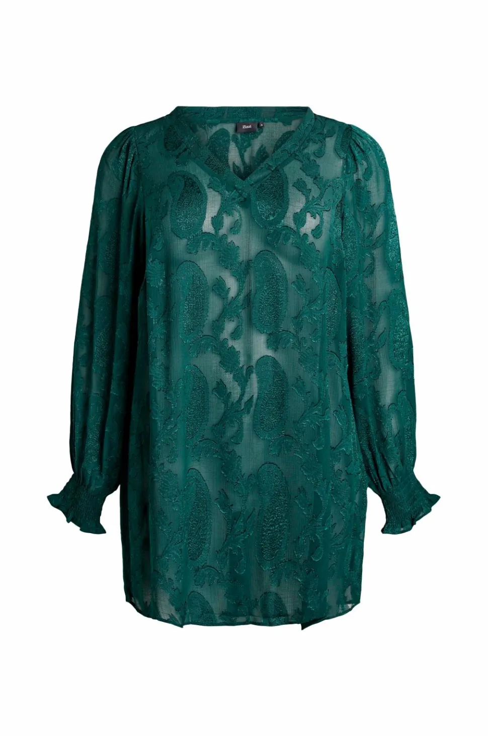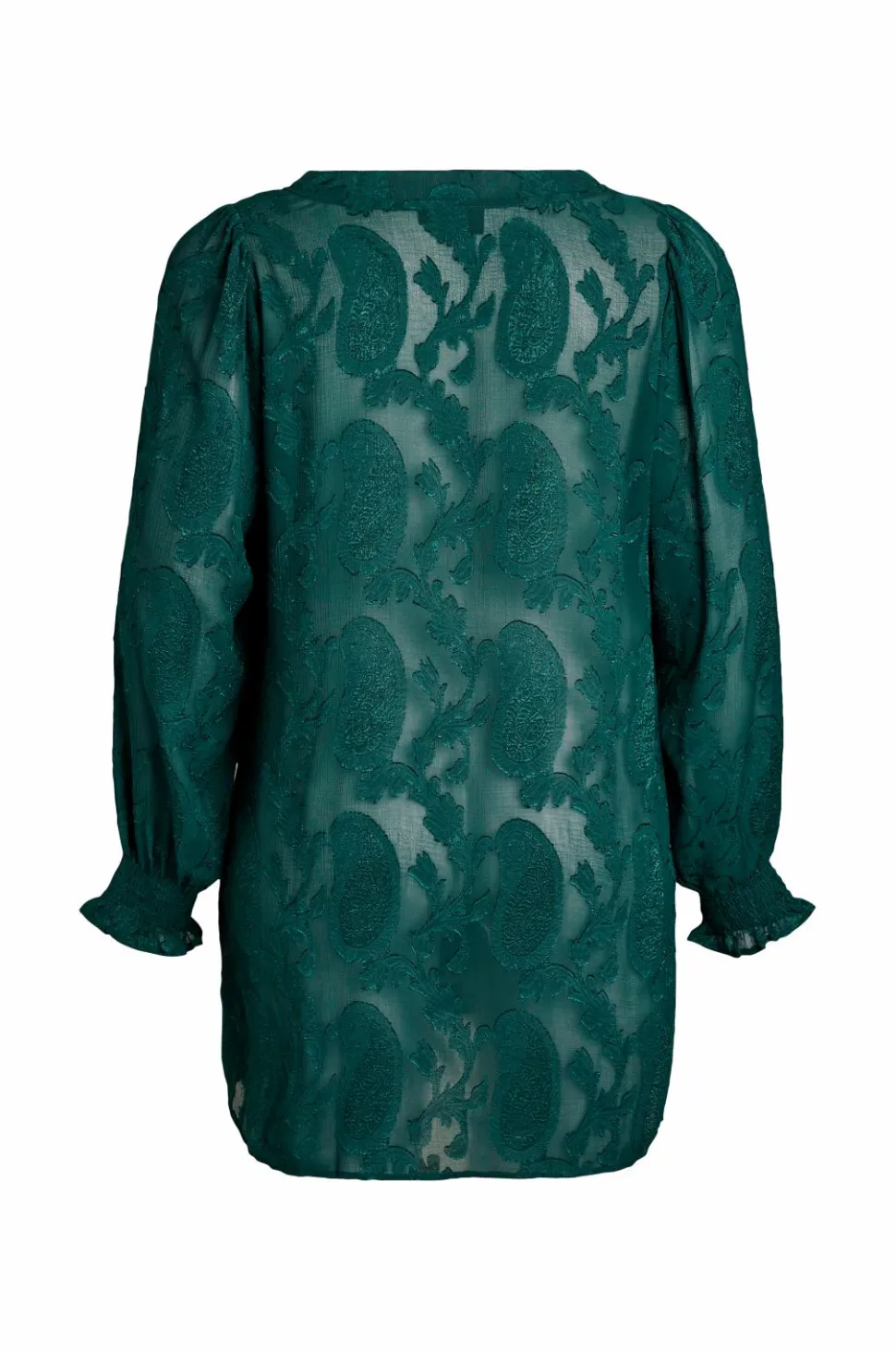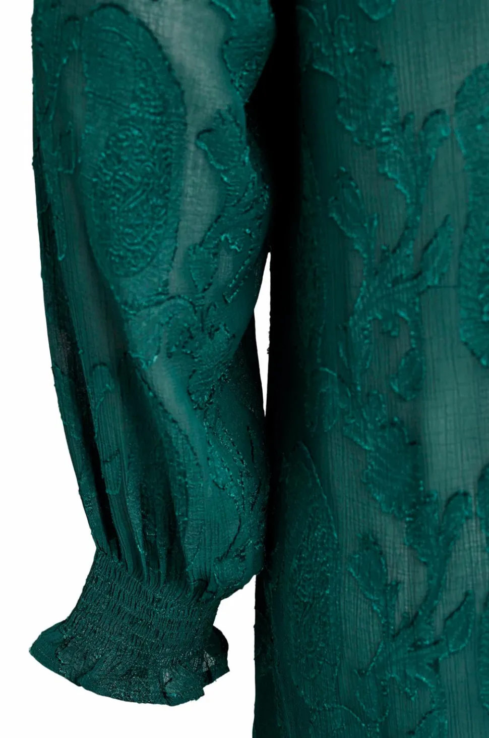 • Lange ballonærmer med smock og flæsekant ved ærmeafslutningerne