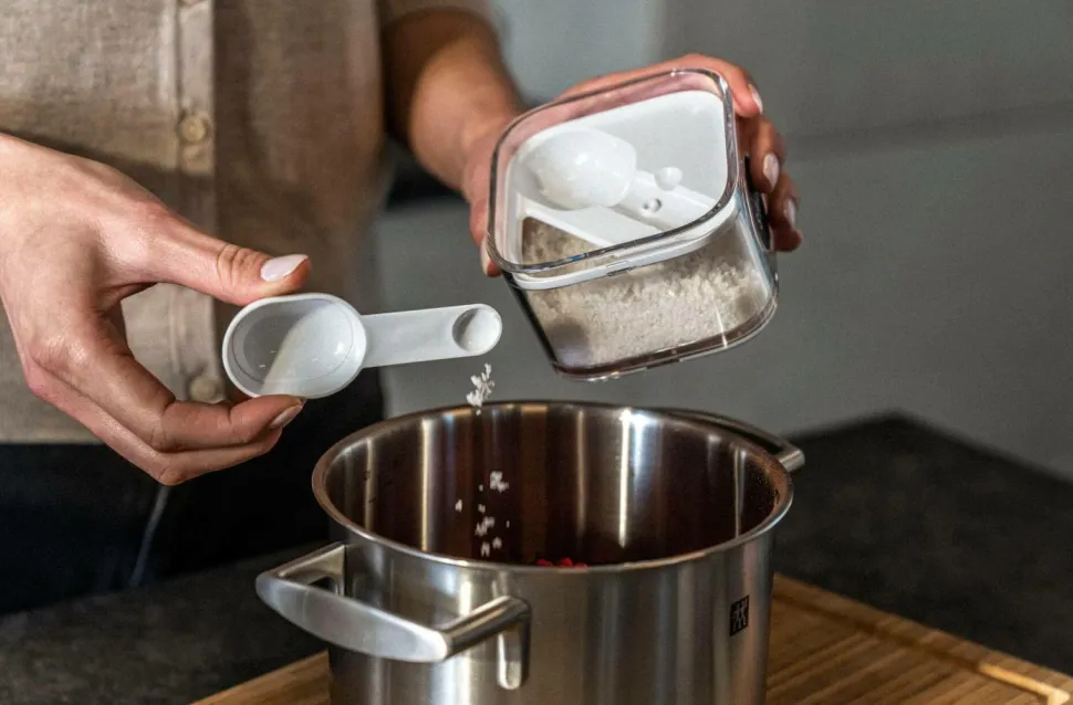 særligt egnet til opbevaring af tørre varer som havregryn, mel eller nødder.