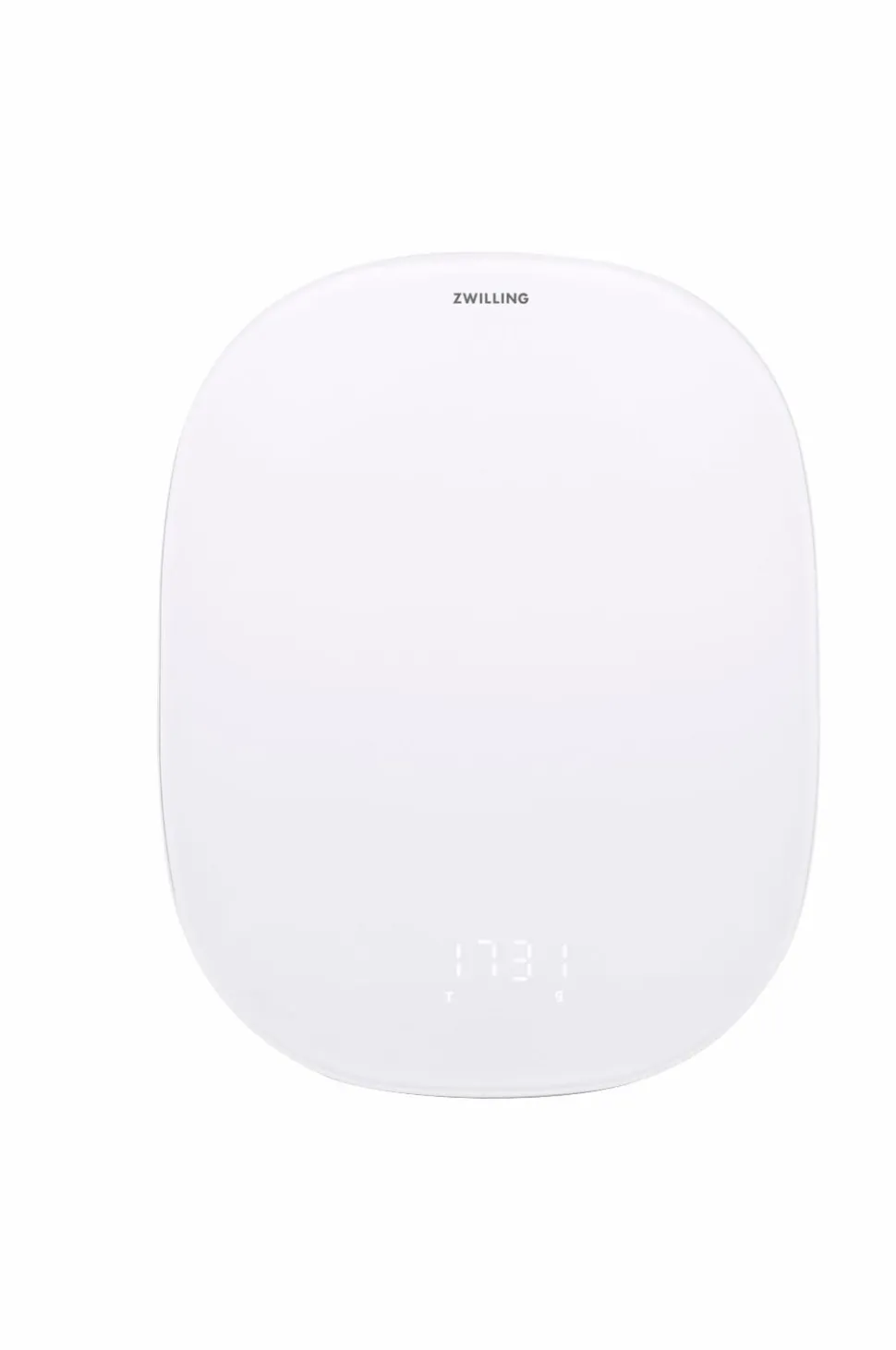 Zwilling Enfinigy køkkenvægt kan klare en vægt på op til 10 kg, indbygget genopladeligt Li-ion batteri med medfølgende ladekabel. Vægtfunktion (Tara) 1 g / 0,1 oz. valgbart. Stor øvre glasflade uden forhindringer med tydeligt LCD-display. Vægten har en touch-knap til betjening og automatisk nedlukning. 5 års garanti ved produktregistrering.