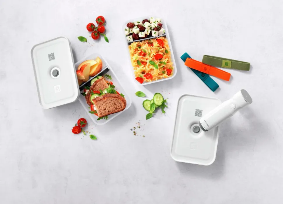 elastisk bånd lader dig forslutte boksen også uden vakuum, eksempelvis om du tager matlådorna med til kontoret