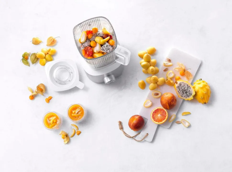 1,4 liters blenderkanden er lavet med BPA-fri Tritan og er både brudsikker og varme- og kuldebestandig. Rengøring i hånden eller med det indbyggede rengøringsprogram anbefales. Blenderens udvendige overflade er også nem at rengøre takket være det moderne design med en knap med indbygget display. Den indbyggede sikkerhedsfunktion forhindrer den højtydende blender i at fungere uden låget lukket, hvilket undgår risikoen for skader.